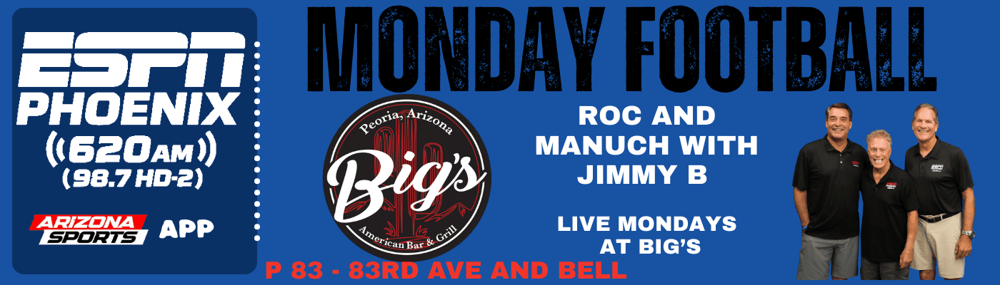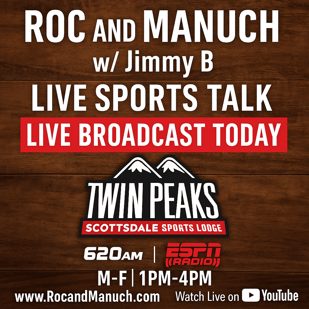 NEW HOME! ESPN 620. Roc & Manuch began working together on Tuesday, September 7, 2004, on ESPN 860 KMVP from 2pm-4pm after the Dan Patrick show.  Shortly after a year, the show moved to KDUS AM 1060 from 3pm-6pm.  The show was originally called “Calling All Sports” but changed to “AZSportsTalk” when AM 1060 became an NBC Sports Radio affiliate in April 2013.  Before NBC, the affiliate was Sporting News Radio and Yahoo Sports Radio.  The guys also hosted a weekend national show on Sporting News Radio for six months. After 13 years at KDUS AM 1060, the guys left to launch 1580 The Fanatic CBS Sports Radio and aired their show Monday-Friday 3pm-6pm from February 2017 to December 2018.  In 2019 the show went back to KDUS and aired nationally on SB Nation Radio Monday-Friday, 4pm-7pm EST, and locally, 2pm-5:30pm on AM 1060. Most recently the show finished five strong years at Fox Sports 910 Monday-Friday 1pm-4pm. Jim Brinson, “Jimmy B” is on his second stint after spending time with Roc and Manuch at KQFN. Now, they have come full circle from their original home ESPN Phoenix  –  ESPN 620.